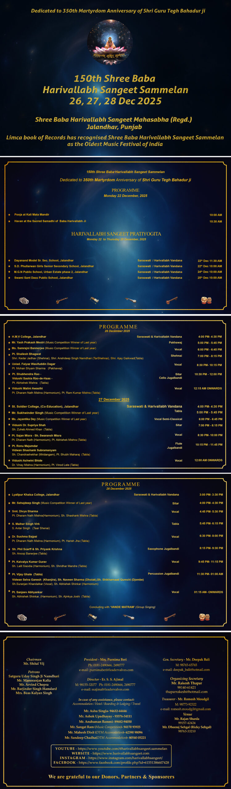 Harivallabh Music Competition 22,23,24,25 Dec.2025