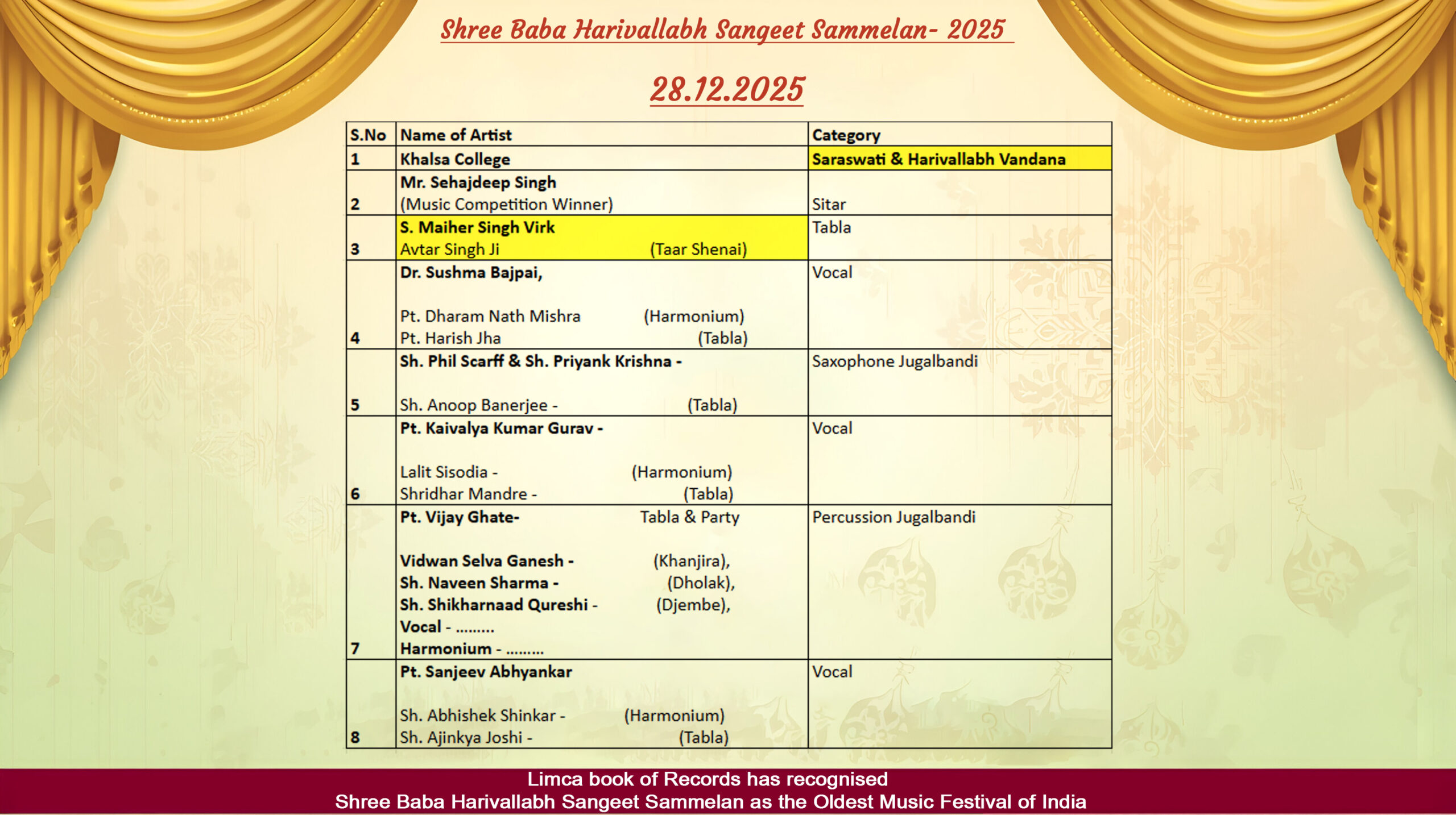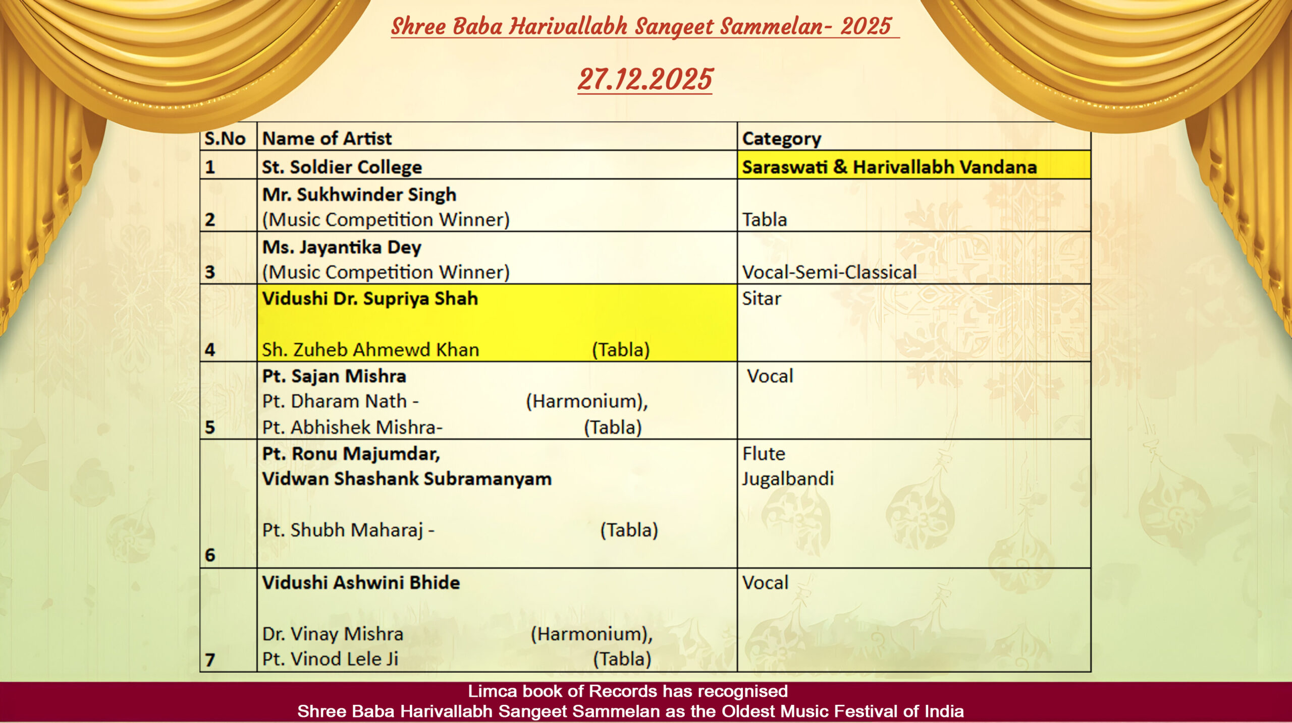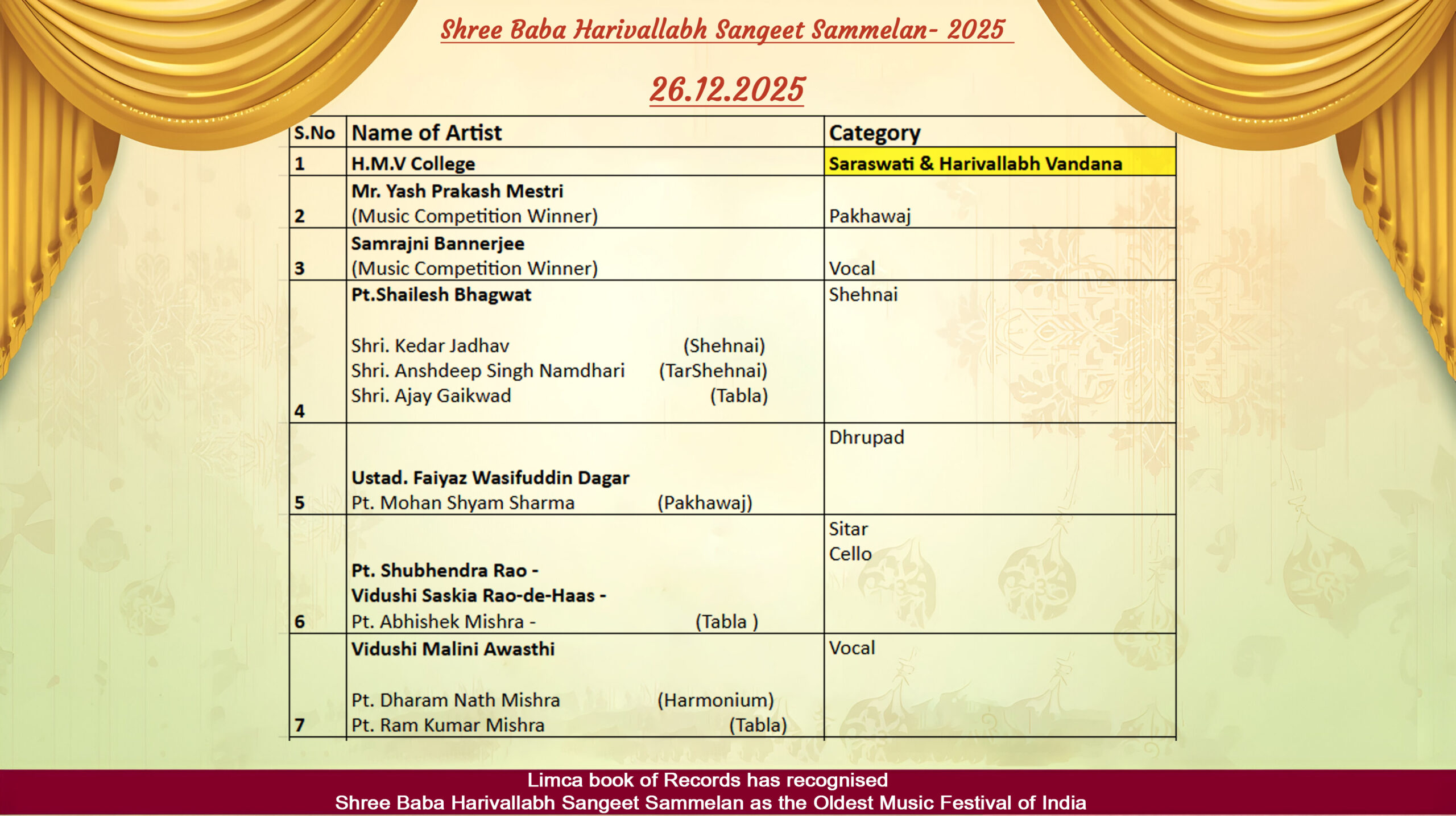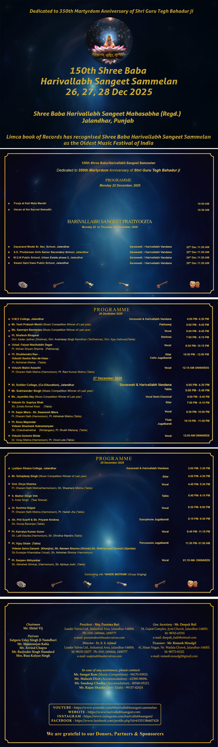 Harivallabh Music Competition 22,23,24,25 Dec.2025